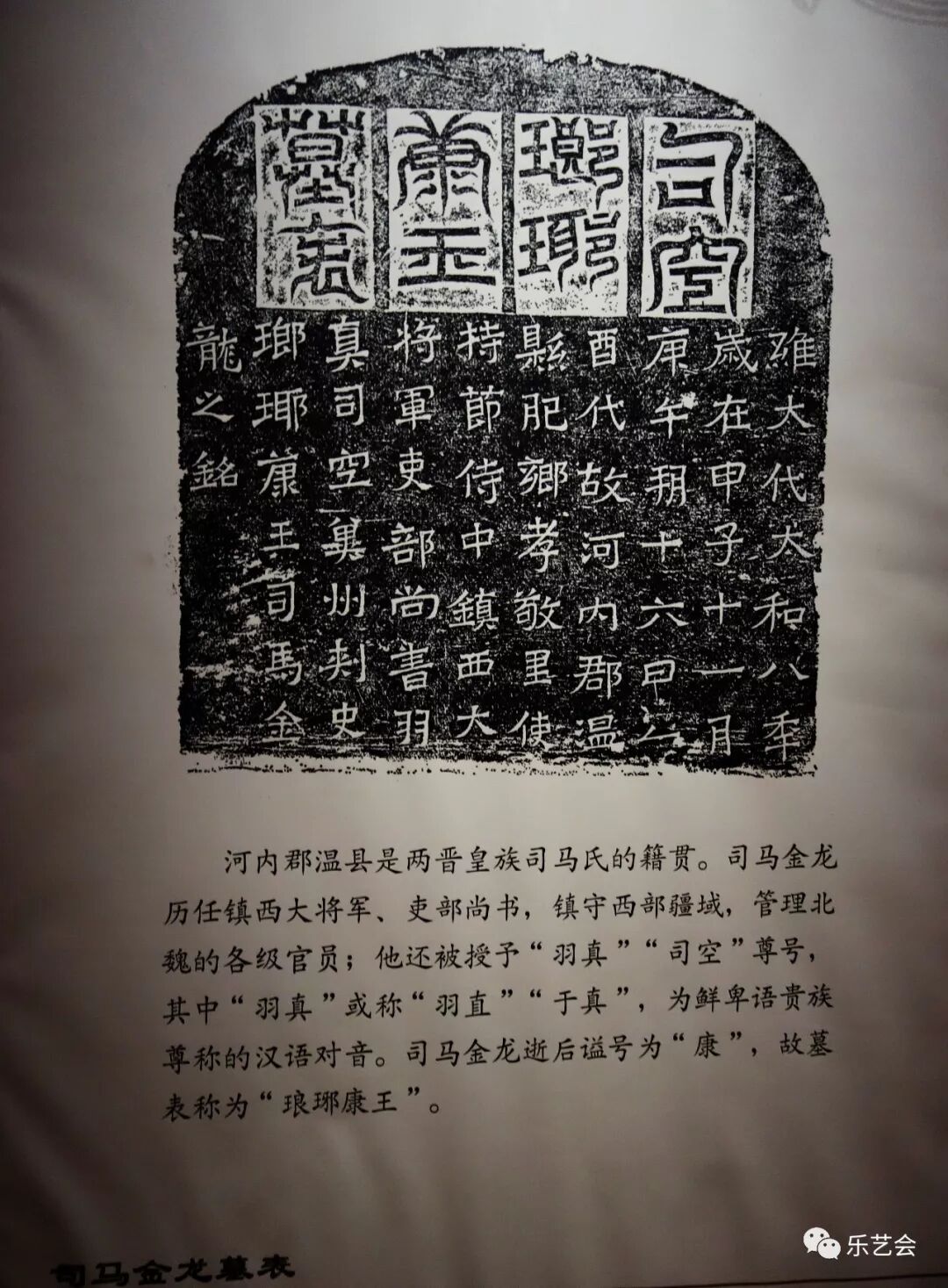 司马金龙墓出土《司空瑯瑘康王墓表》