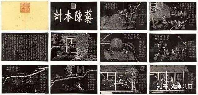 另外的一件,是故宫 文华殿《几暇怡情》展上的一件藏品:乾隆皇帝临王羲之十七帖册。扉页上也有静明园宝的大红印章。静明园旧藏御制《耕织图》拓本,尺寸为32cm×25.5cm,二十一开,扉页钤有静明园宝朱文殿座章。卷前冠有乾隆御笔楷书大字艺陈本记,有钤印乾隆御笔;以及序言一篇,钤印有圆印乾、方印隆、和方印几暇临池。静明园旧藏御制《耕织图》石刻。石刻原嵌于皇家清漪园延赏斋左右廊壁,残石现存国家博物馆。