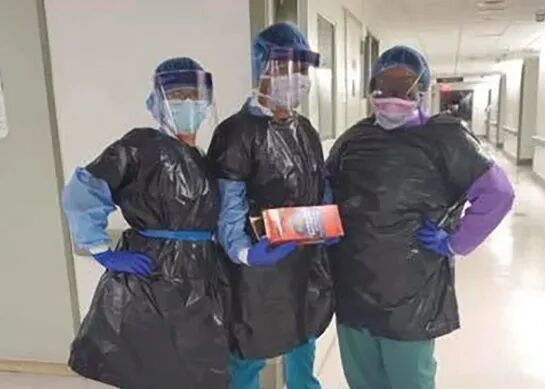 护士朋友发给我的照片,她们已经被逼的要拿垃圾袋当防护服了!我们的政府在哪里?!