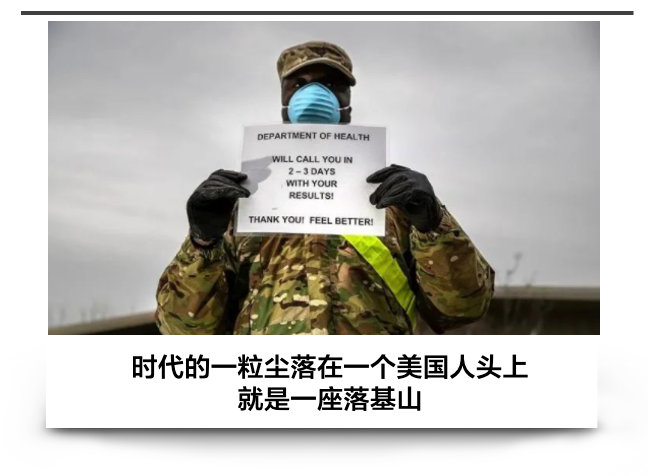 因为病毒对美国是一个近乎完美的敌人,他不能被航母、核弹、无人机、精确制导炸弹毁彻底毁灭掉,也不会屈服于我们的美元霸权、石油霸权、贸易霸权,对付他,只能靠全国上下统一动员,自律的国民,顺畅的物流和大数据体系以及联邦政府一颗把人民生命放在首位坚决抗疫的决心。