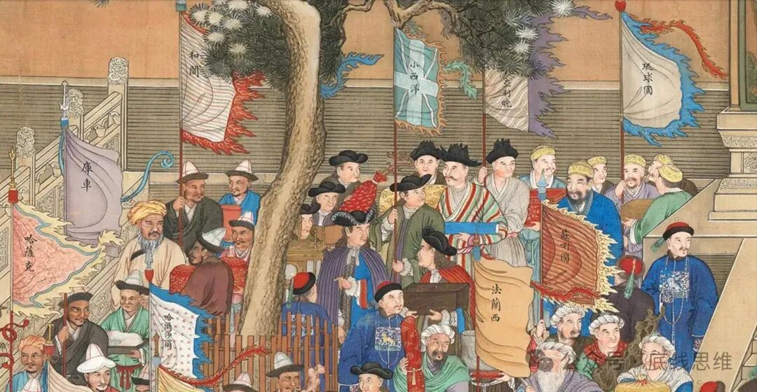 清代宫廷画师笔下的“万国来朝”美国作家霍华德·W.佛兰奇(Howard W. French)于2017年出版的《诸天堂之下的一切事务(歪译“普天之下”):往昔如何帮助中国形成其对全球性强权的追求》(Everything Under the Heavens:How the Past Helps Shape Chinas Push for Global Power)是宣扬中国威胁论的标准作品,竟有个童话式的开头:从前有一个国家就在世界的中央,而其地位得到无论远近的各国人民的承认。今天,我们把那个国家唤作中国。对邻国的统治者们来说,从中央王国(Central Kingdom)的承认中获益固然重要,但,对一连串中国皇帝来说,让外国人象征性地成为属臣,一次次地来向他们的道德优势与权力鞠躬致敬,于他们的权威也同样重要。换句话说,其他人心甘情愿地卑躬屈膝,拜倒在皇帝面前,这是对内证明了他无懈可击的道德权威,按老话讲,是证明了他拥有上帝的委任(天命)。