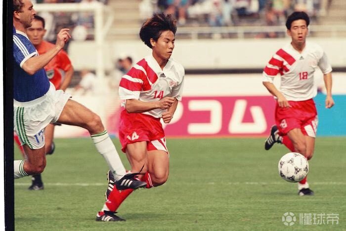 甲A初期,南派足球最有灵气的前锋胡志军(14号),右侧那位18号是国安最好的国产中场曹限东