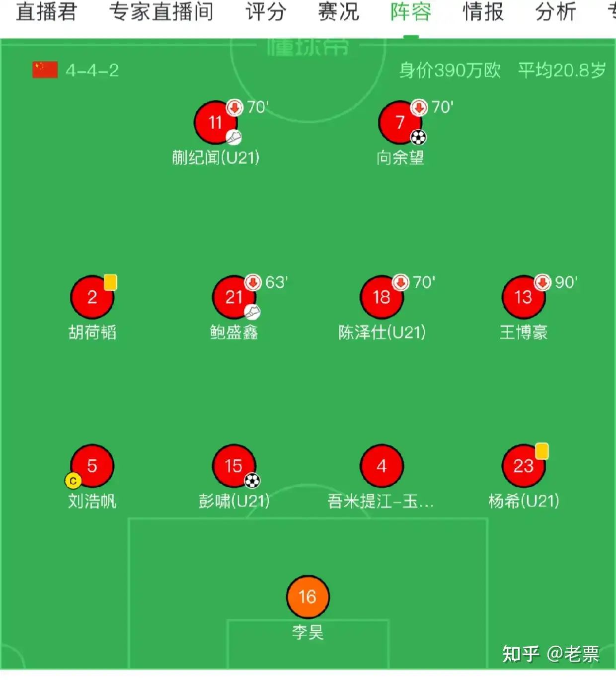 上图是不懂足球的新闻媒体记者弄错的,大家将就看。U23国足打的不是442 阵型,还是532