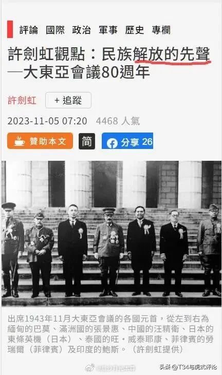 岛内绿媒甚至在2023年公然纪念“大东亚会议”80周年,还将日本对亚洲的侵略说是“解放的先声”。1943年东京“大东亚会议”参加者: