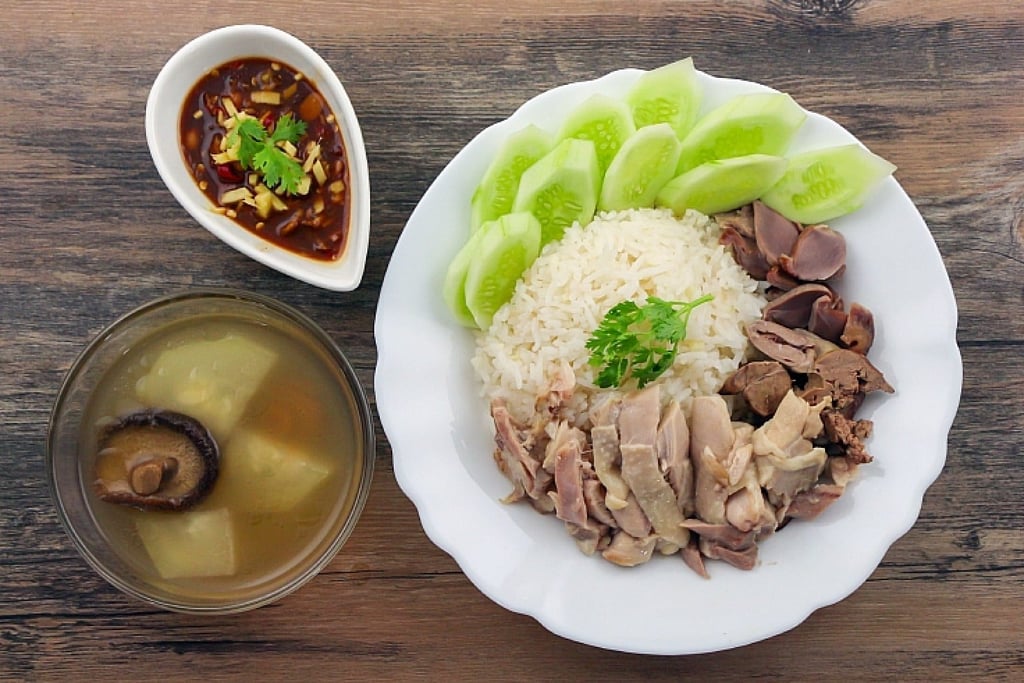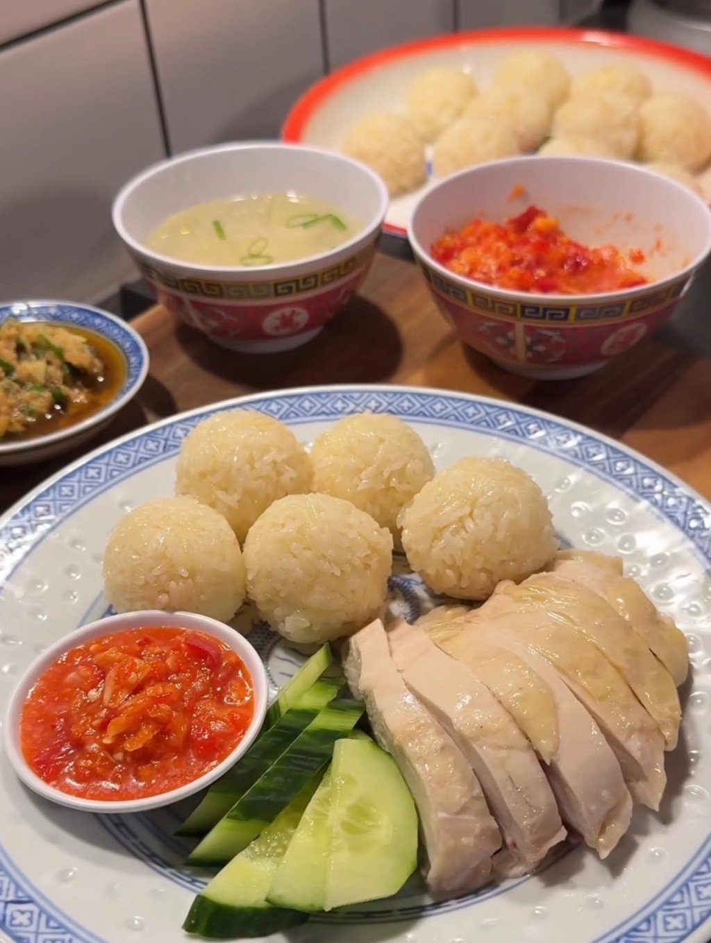 新加坡人号称发明了海南鸡饭,自诩最正宗,一般带辣酱和葱姜