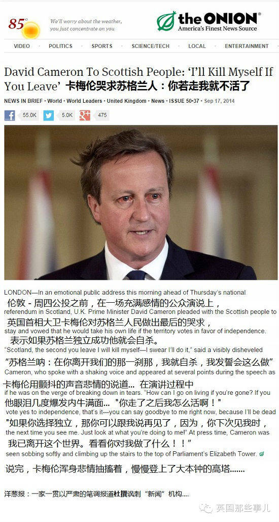 【卡梅倫哭求蘇格蘭: 你若獨立,我便不活了……】