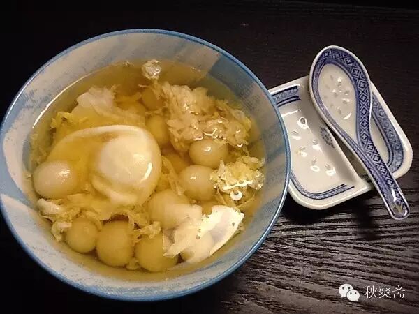 如果跟酒酿同煮,酒酿冷水下锅才不会发酸~~~用冰片红糖的话也要先下锅: