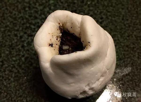 然后两手慢慢挤压收口~~~如果面太干,此时可能会捏破。没关系,手指沾点水慢慢修补:)