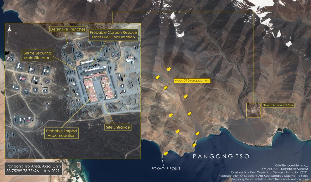 中印两军脱离接触六个月后的卫星图像显示,解放军的新前沿基地距约定的禁止巡逻区不远,该基地设施完备,基地外围有壕沟,然后是防护墙,内有防水宿舍等。兔子可能要像在南海填海造岛那样在喜马拉雅山上填造陆地岛礁了。