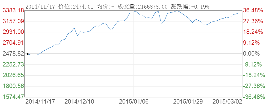 从该日的2474.01点到2015年3月2日的3336.29点,在不到4个月时间里,沪股上涨862.28点。A股牛市全面启动。