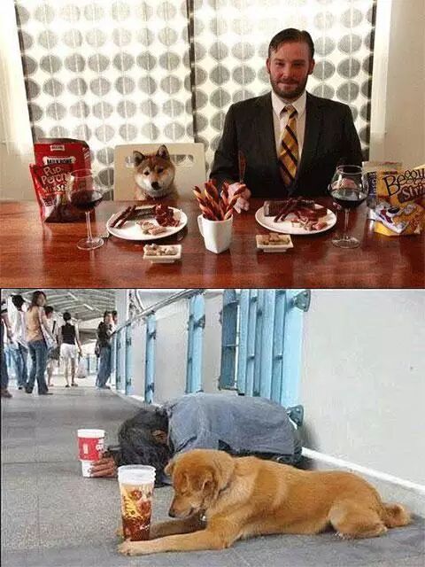 一个月前,我吃什么,狗吃什么;今天,狗吃什么,我吃什么;明天就要吃狗。