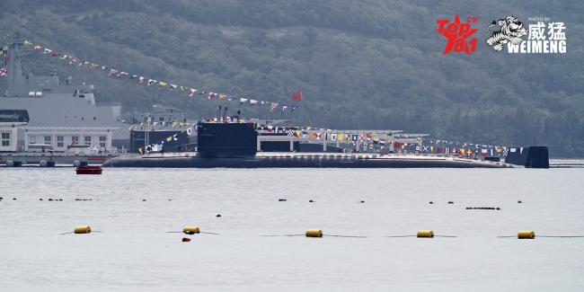 底下几位朋友指正,这是039A常规潜艇,不是093。常规潜艇命名是长城某某号,核潜艇命名是长征某某号。而且093身材要修长很多。见下面的远观图。