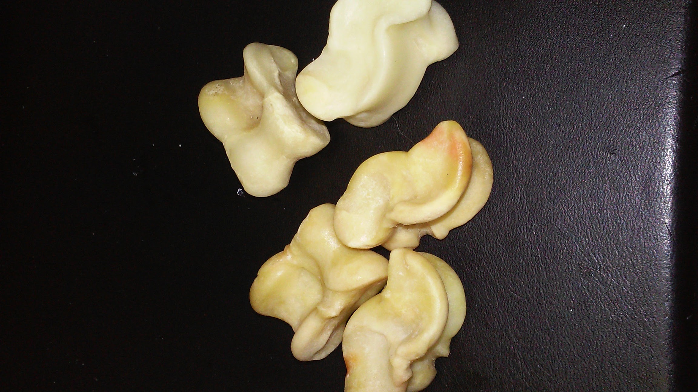 实在没羊拐可玩儿只能用央求大人给多缝几个小沙包代替,要是家长太忙没工夫哄孩子玩儿----比如我,就只能另想办法,后来又一阵子有人想出了用杏核来代替,就是把杏核一面涂上红色,另一面涂上蓝色用以区分,玩儿法就是羊拐的简易版,玩儿得也很开心。