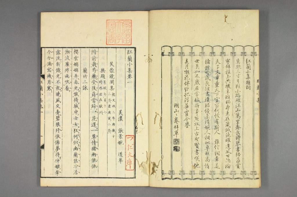 最值得一提的是梁川星岩的夫人梁川红兰(1804-1879,享和四年-明治十二年),又叫张红兰,是日本最早的巾帼汉诗人之一。红兰名景、景婉,字道华,号红鸾、红兰,以张为姓,故又称张红兰。文政三年(1820)与梁川星严结婚,不久夫妇一起周游日本,长达五年,安政五年(1858)梁川星严病死,梁川红兰被捕入狱。安政六年才释放,之后她整理出版了梁川星严的遗稿,晚年在京都开设私塾,直到明治十二年(1879)逝世。梁川红兰一生留下400首以上的汉诗,和绘画作品,有《红兰小集》二卷、《红兰遗稿》三卷传世。