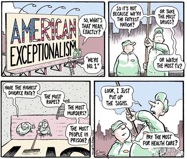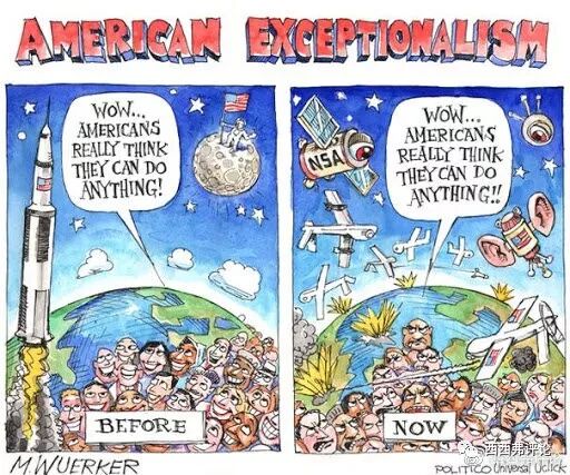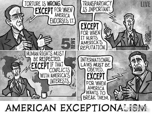 我们中国人可能会感到很惊讶,怎么会有这么骄傲自大的国家。我们看看历任美国总统的演说,提过多少次美国例外,多少次以世界拯救者自居。