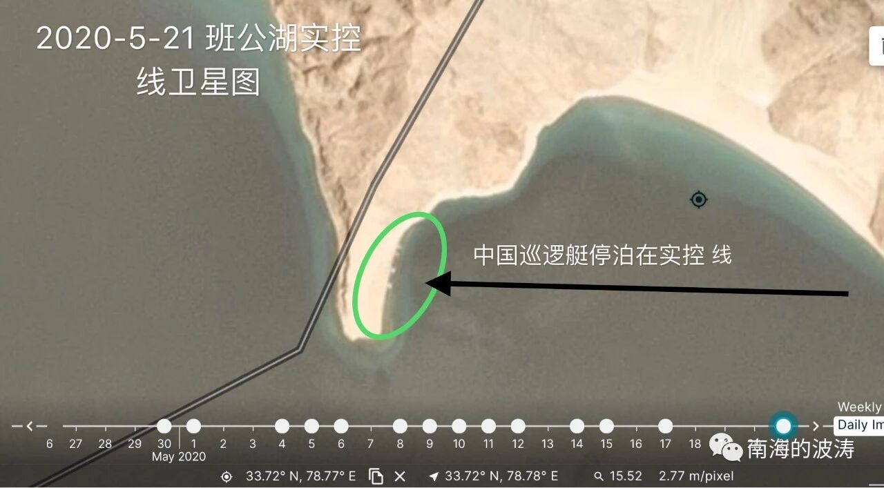 21日的卫星地图显示,我军已经驱逐了印军,西海舰队停靠在2017年打架的“战场”岸边上,严正以待。