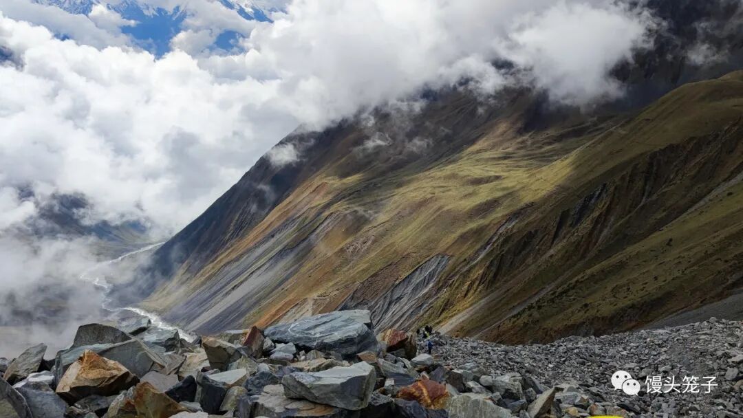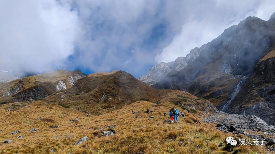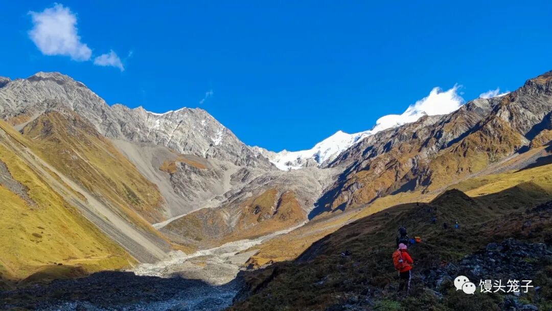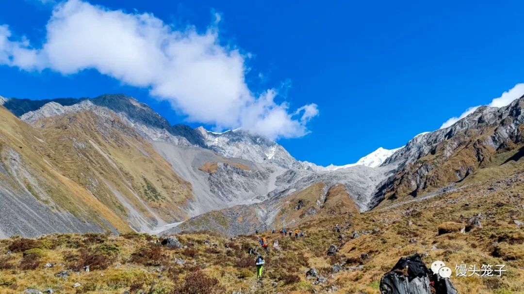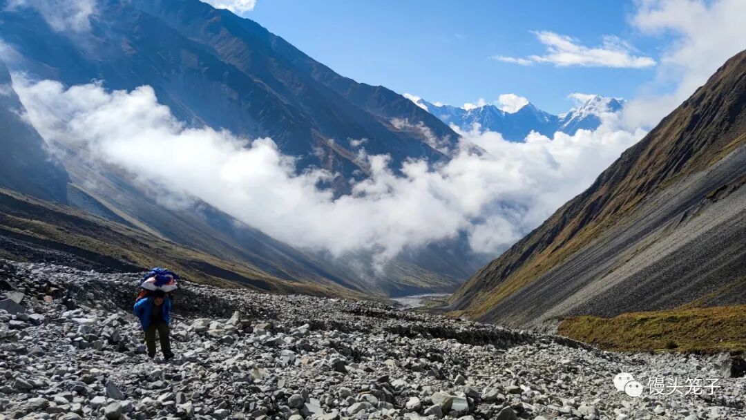 10月4号,又是一个大晴天。从成都出发四天后,我们终于走出了大本营。到C1的路不算长,5公里左右。海拔要从3800爬升到4900米。