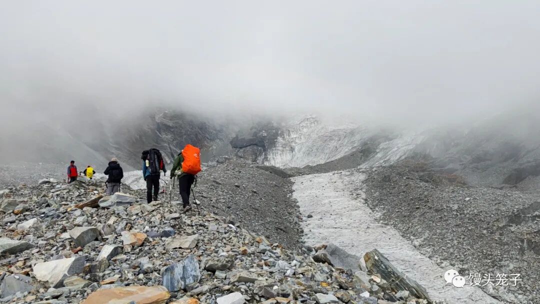C1就在冰川上,只不过我们扎营的地方,冰碛物把脚下的冰川遮掩了起来。