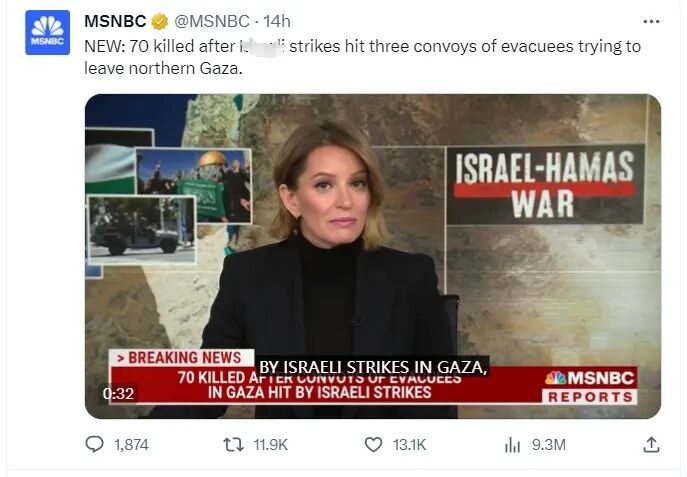 昨天我看CBS的直播,主持人也很困惑,她说现在几十万巴勒斯坦人因为惧怕以军无差别轰炸,在逃往南部,但以军同时向声称不会袭击的南部地区发射了几十枚导弹,于是这几十万人又不得不折回北部,这到底是什么意思?我们也想问,以军到底是真的想让难民们逃生,还是只是骗他们聚集在一起,好杀一点?到底哪里才是安全之地?还是哪里都不是安全之地?