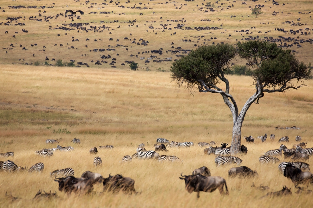 翻过昨天的小山头,立马陷入了角马和斑马的汪洋大海里
