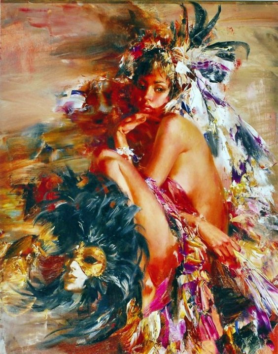 Ivan Slavinsky也是列宁格勒出生的,1968年,和Mstislav Pavlovy一前一后。他母亲是列宁格勒小有名气的画家和美术史专家。他算超现实主义和印象派画家。可能受到苏联时代社会主义现实主义的“约束",他这个超现实主义和Salvatore Dali可是太不一样,要现实得多了。风格热烈,富于戏剧性,特别爱用大片的红色。